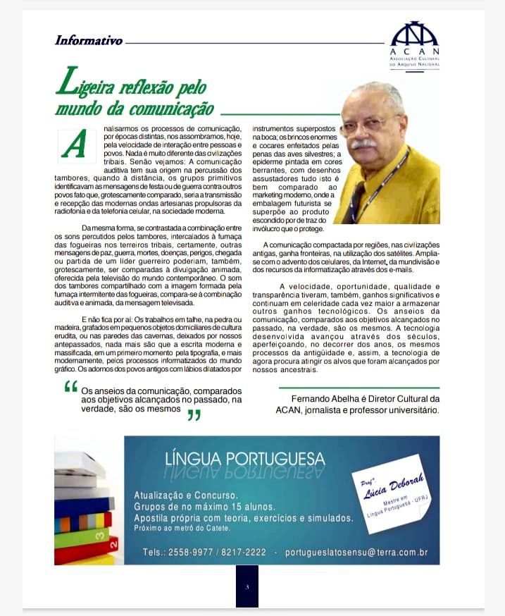 Crônica publicada no final da década de 90, quando o autor era diretor cultural da Associação Cultural do Arquivo Nacional – ACAN