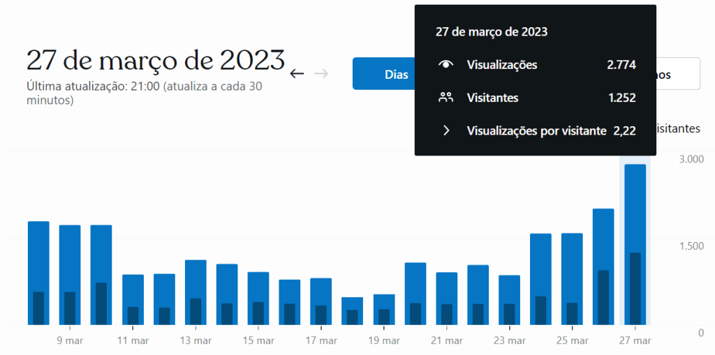 As ilustrações referentes às estatísticas deste blog, mostram que dia 26, foram registradas 2008 visualizações, enquanto que ontem, 27, são 2680 , até às 20 horas, totalizando 4688 acessos sobre o mesmo assunto: portabilidade da CBTU retirando-se da REFER para o BB Previdência.