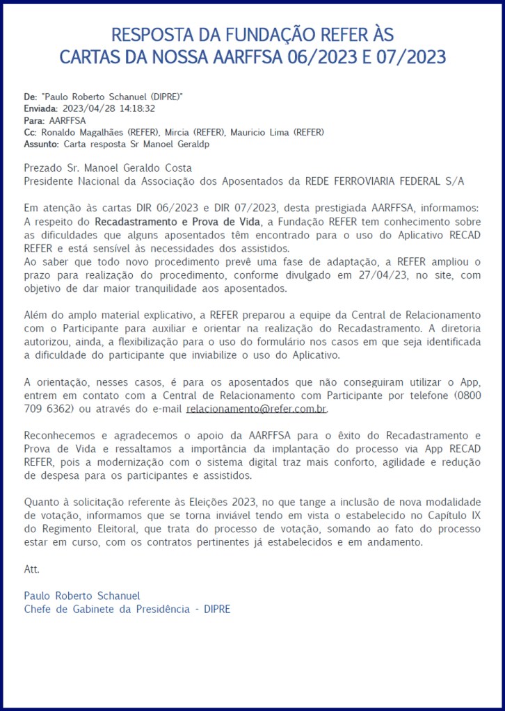 Quanto ao problema das eleições, evidencia-se que a tendência é explorar os votos do pessoal CBTU com seus pares, em detrimento a grande maioria dos participantes que são da EXTINTA RFFSA e não sabem nem que tem votação,.