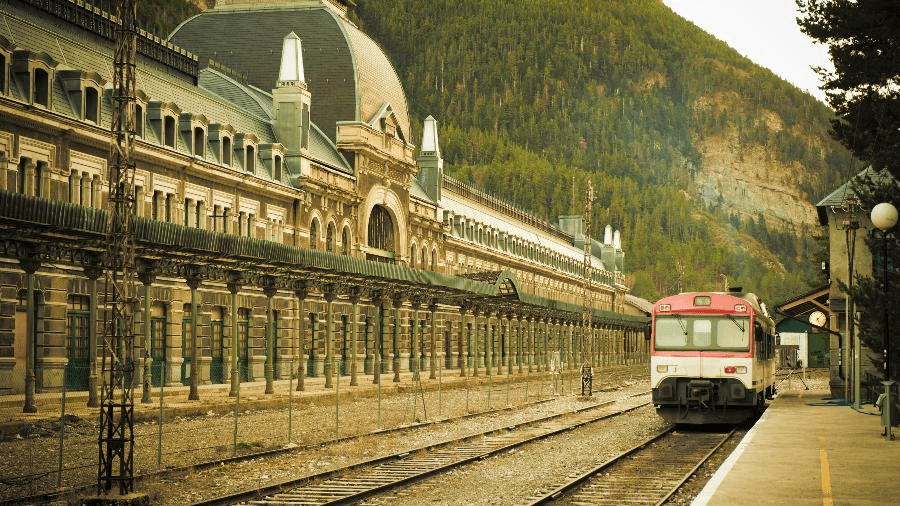 Nos picos nevados dos Pirineus, cordilheira que separa a Espanha da França, uma estação de trem abandonada há mais de 50 anos acaba de ressuscitar como um luxuoso hotel 5 estrelas na província espanhola de Huesca.