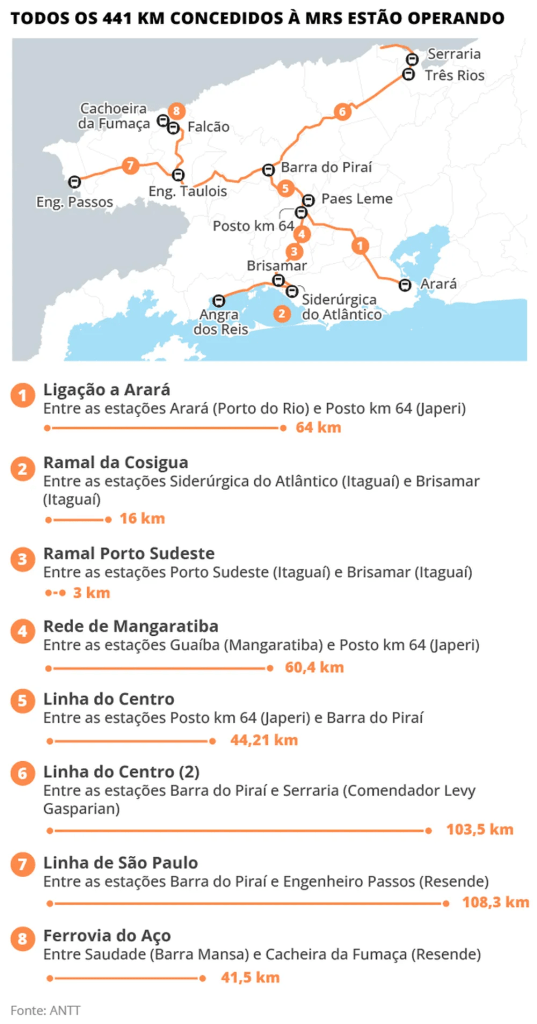 No trecho de pouco mais de cem quilômetros que vai do Centro de Angra a Barra Mansa, a estação do porto virou centro turístico da prefeitura, e o pátio de manobra de trens, estacionamento. No percurso, vêem-se trilhos beirando ciclovia e casas, cruzando ruas e cortando a serra e fazendas.