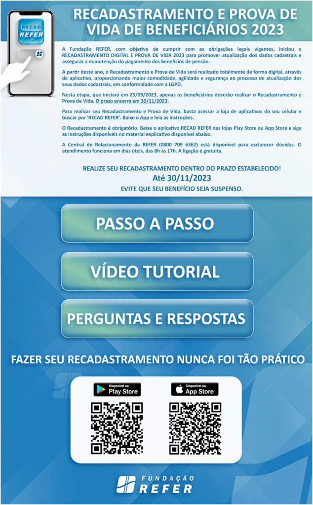 Nota da Redação – É importante atentar que, segundo se depreende da publicação da REFER, este recadastramento destina-se, tão somente, aos pensionistas.