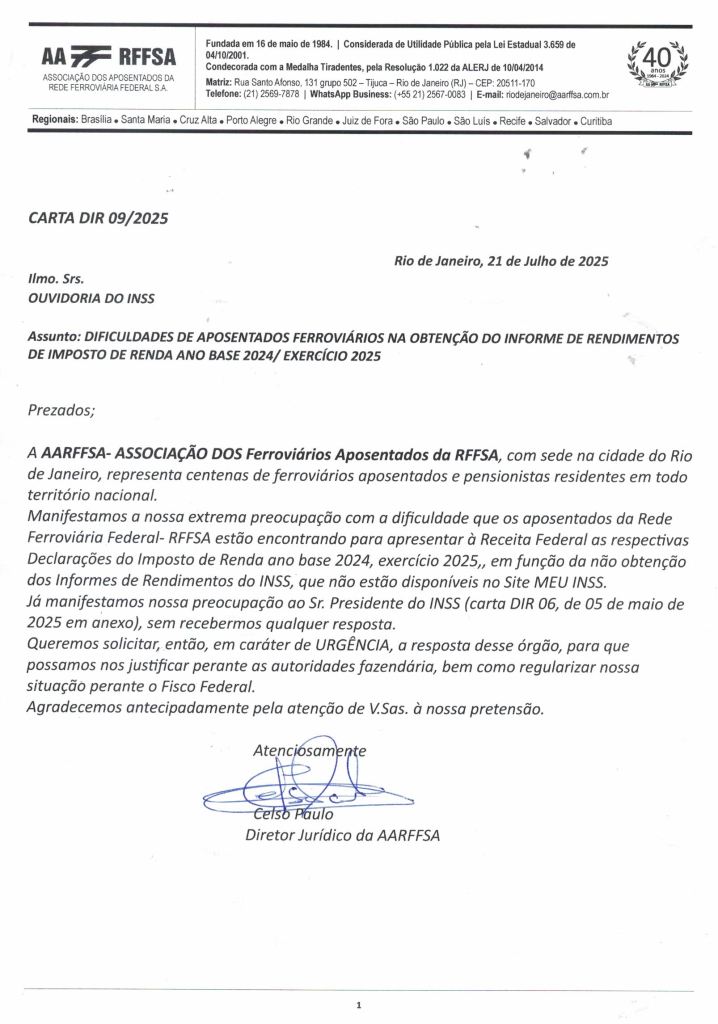 Estamos muito preocupados com a omissão do INSS na questão da declaração do Imposto de Renda dos Aposentados da nossa RFFSA.