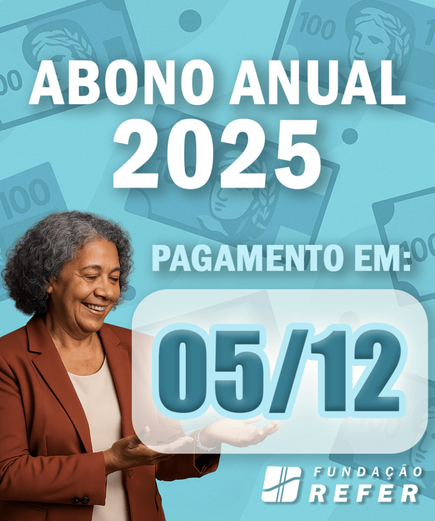 A Fundação Refer informa aos seus associados, participantes assistidos, que o pagamento do abono anual, será realizado dia cinco de dezembro, em parcela única, conforme previsto no calendário anual de pagamentos.